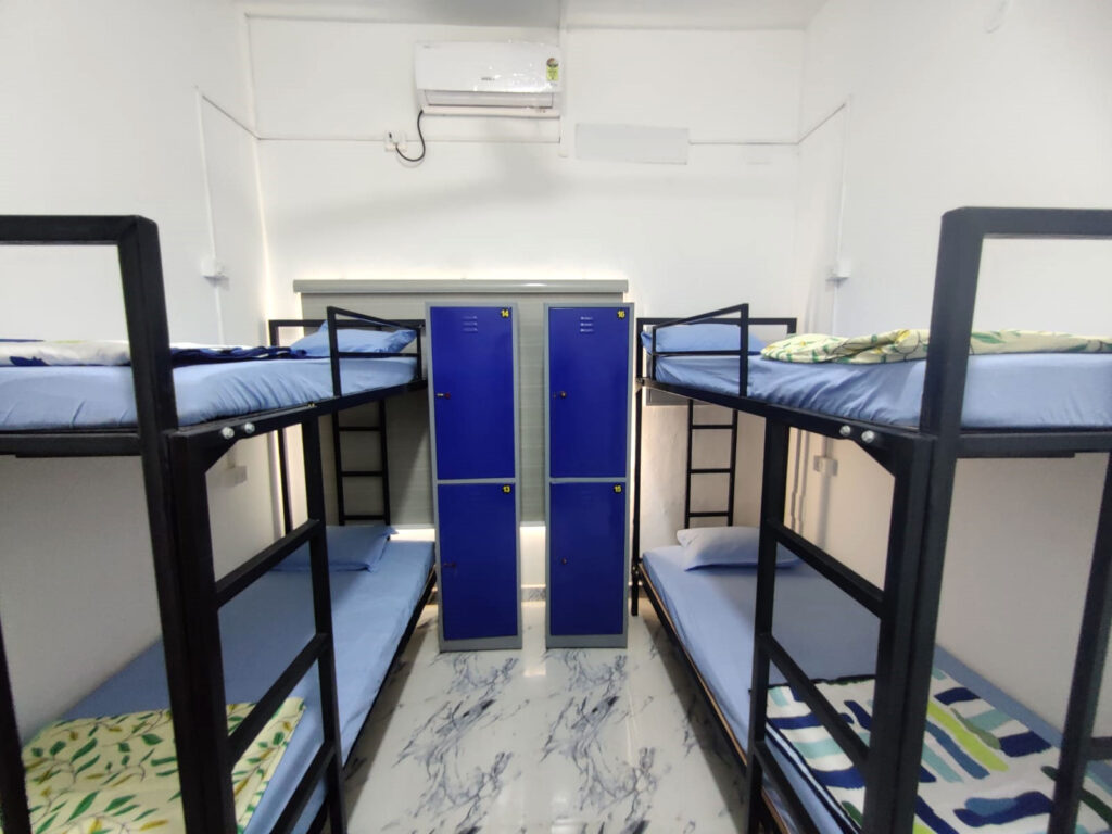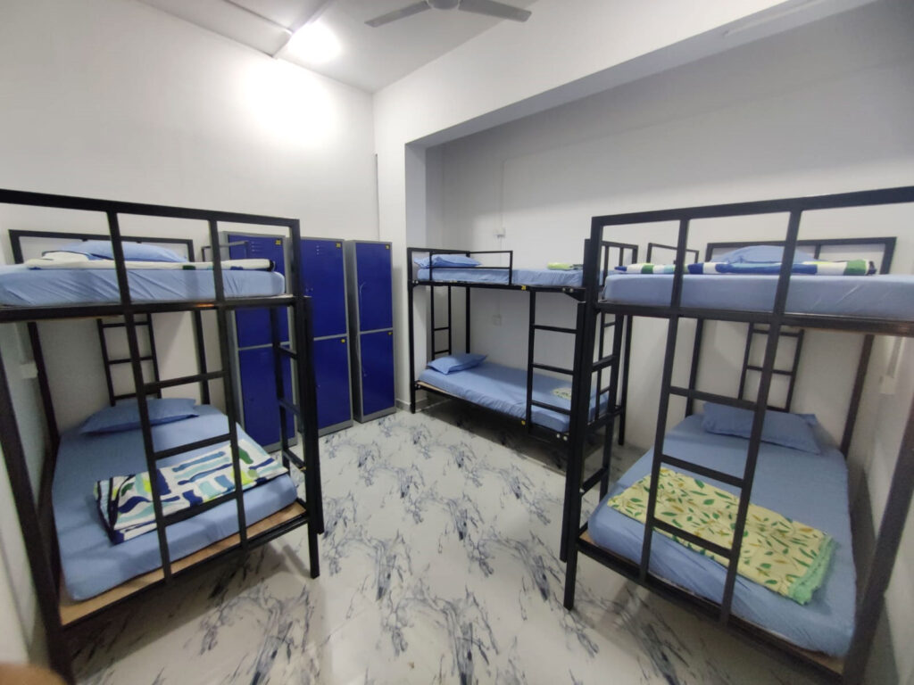 Our Boys hostel in Padur offers both 4-sharing and 6-sharing rooms. The 4-sharing gives more personal space, while the 6-sharing is more budget-friendly with the same amenities.